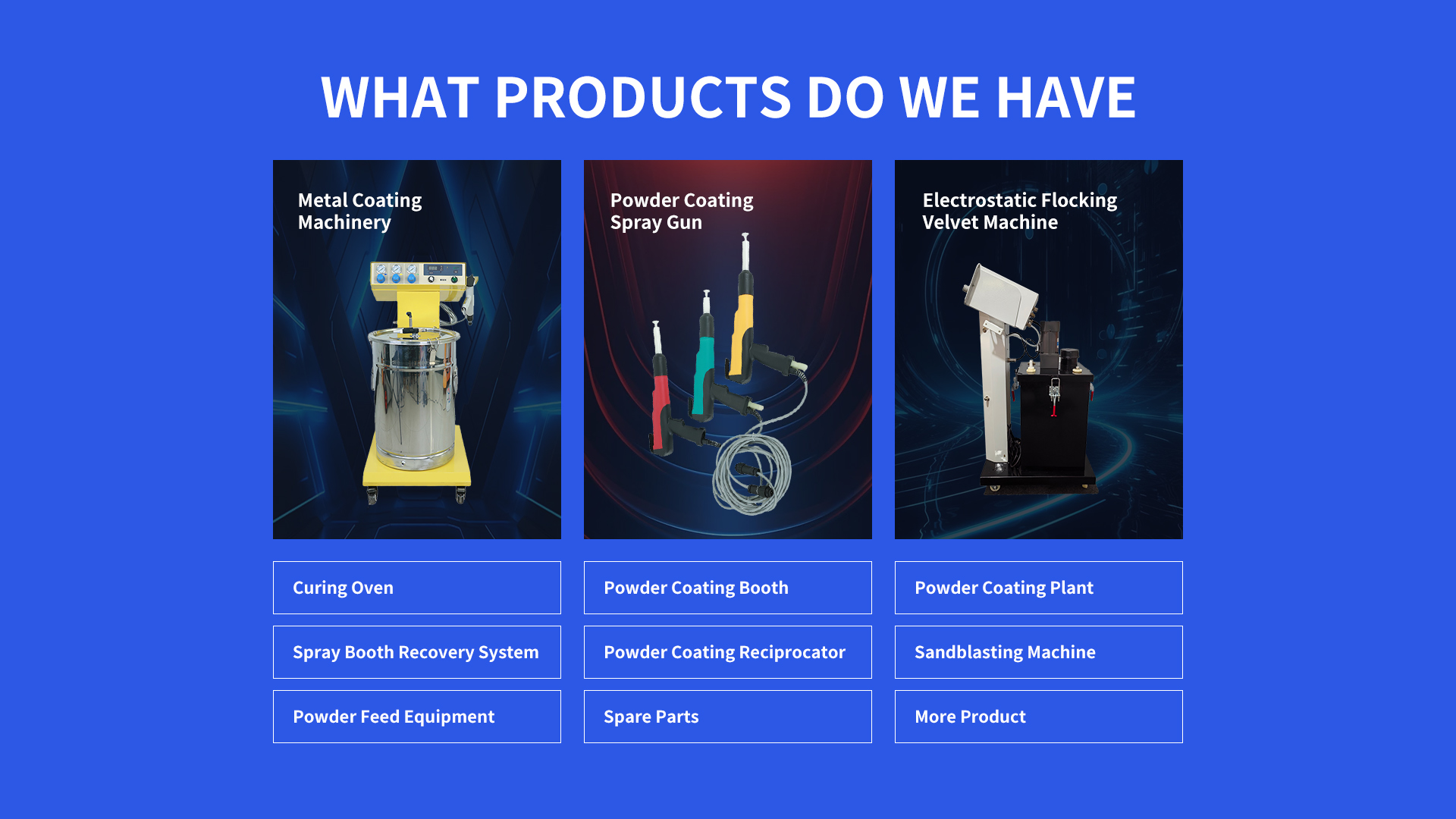 A Commercial Powder Coating Machine applies dry powder to metal surfaces via electrostatic charging and thermal curing. Core components include a spray gun, electrostatic unit, curing oven, conveyor belt, and powder recovery system.